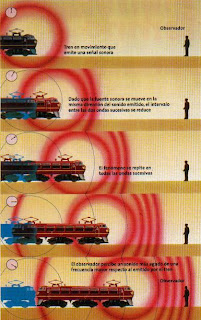 Cuando la fuente de ondas y el observador están en movimiento relativo con respecto al medio material en el cual la onda se propaga, la frecuencia de las ondas observadas es diferente de la frecuencia de las ondas emitidas por la fuente. Este fenómeno recibe el nombre de efecto Doppler en honor a su descubridor.